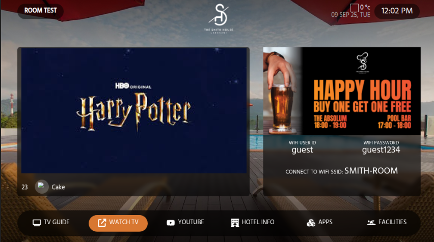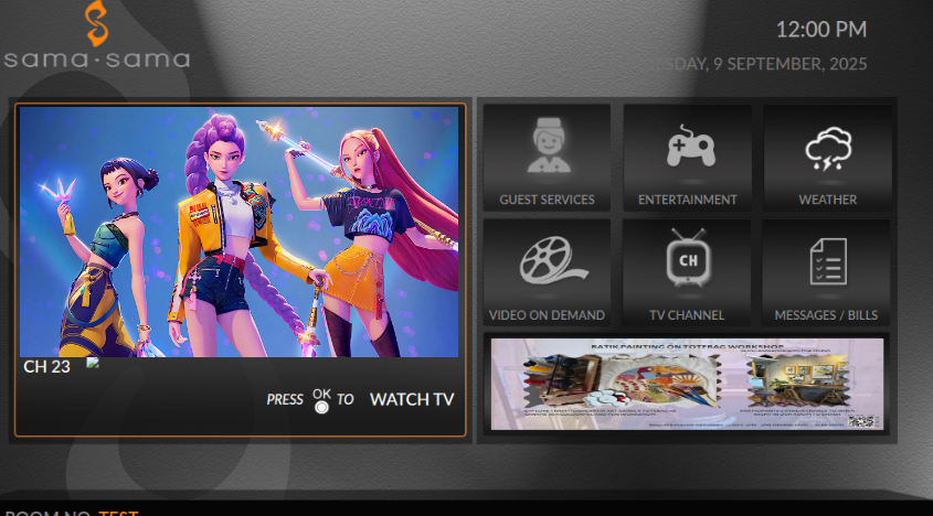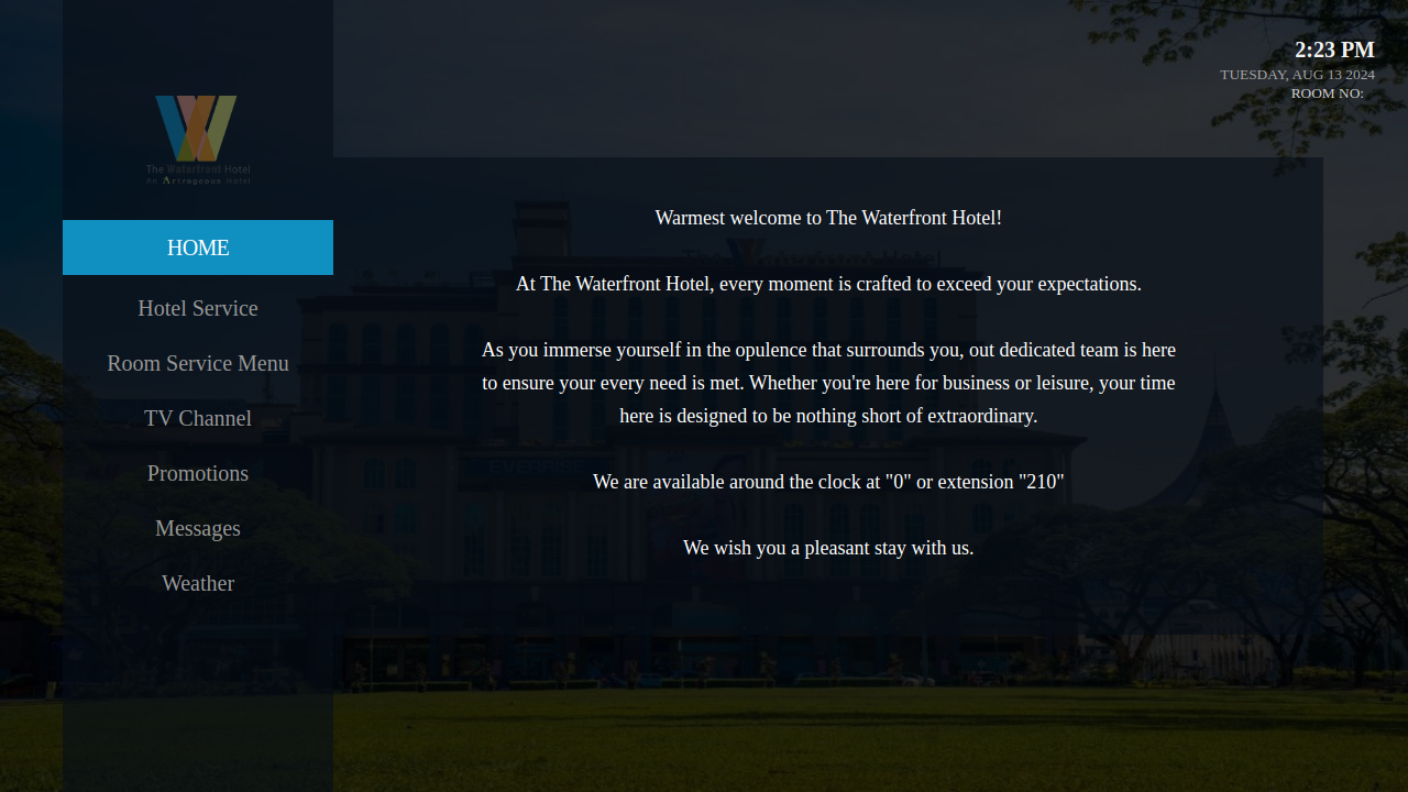 Customized TV Portal Landing page for branding and hotel information