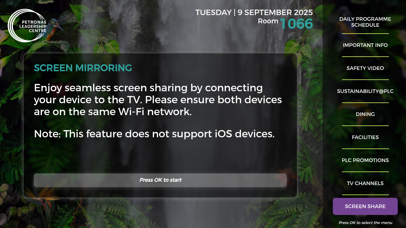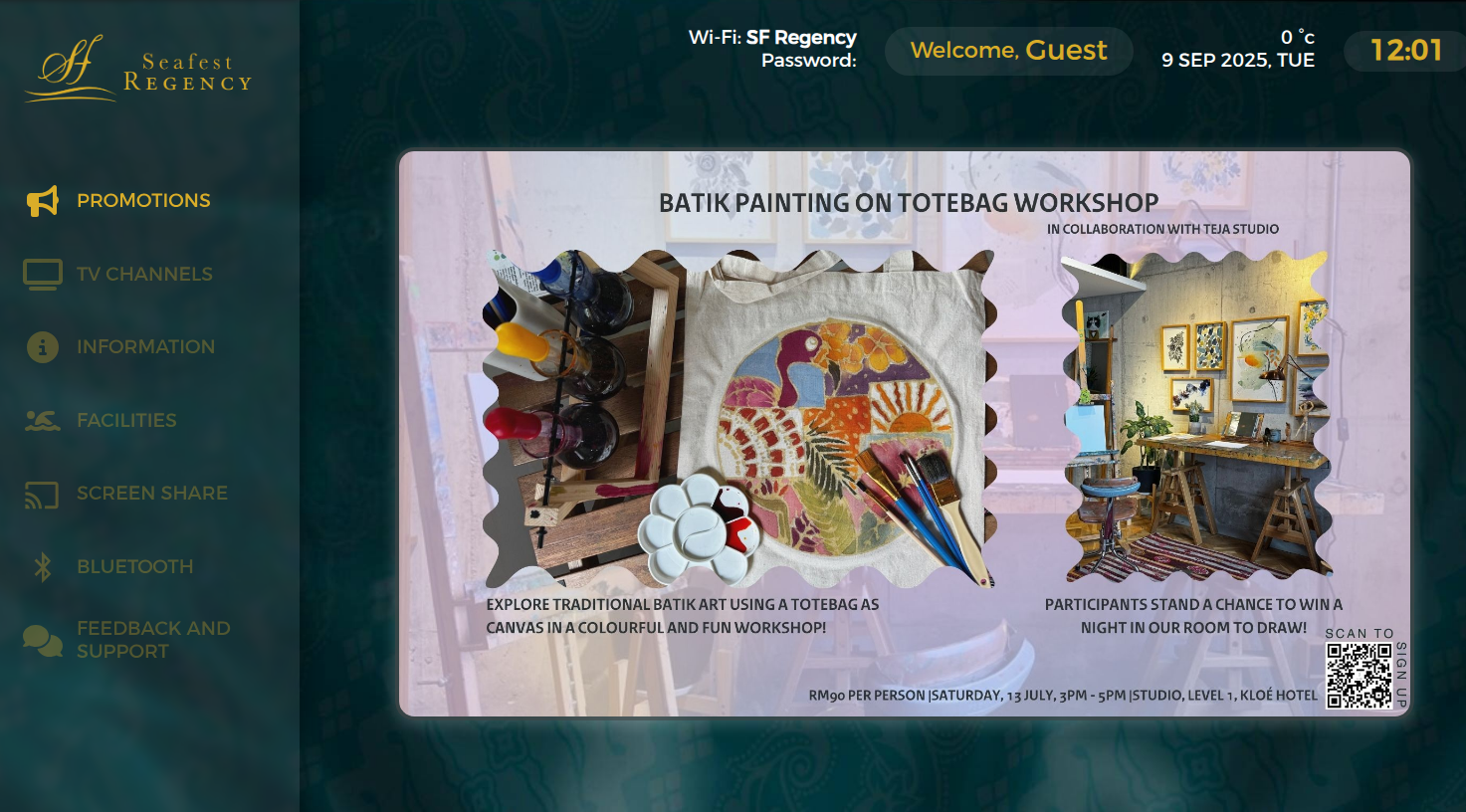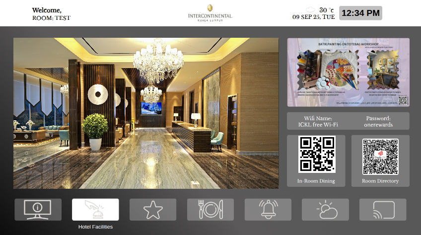 Hotel information page on TV